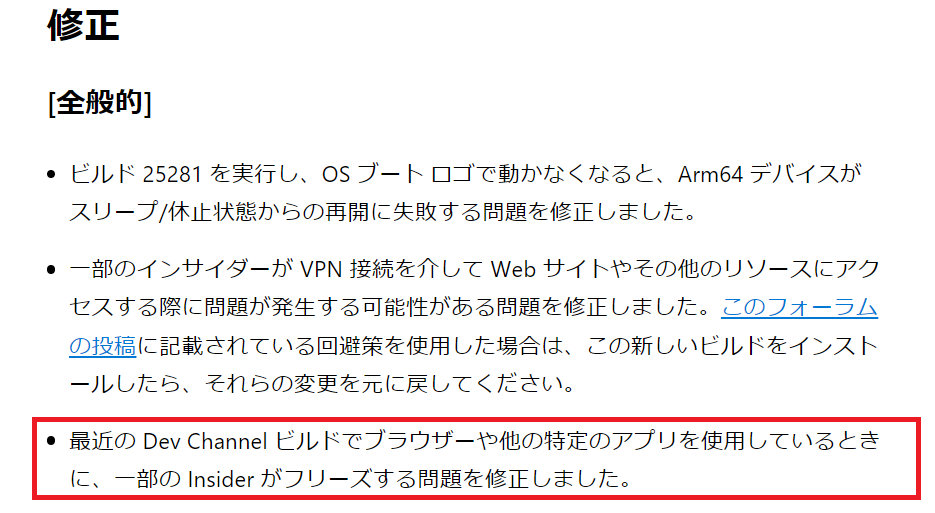 2023/1/29更新:Insider Preview側のアップデートでEdgeがフリーズ