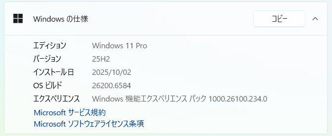 2025/10/01 Win11 25H2 の提供が開始されたようです