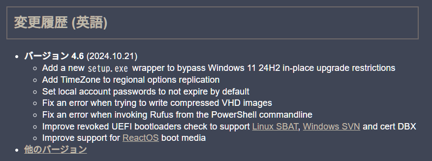WIN11 24H2でのアップグレードインストールにも対応したようですhttps://rufus.ie/ja/
