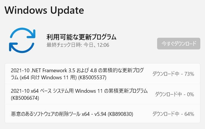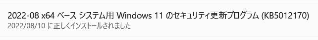 2021-10 x64 ベース システム用 Windows 11 の累積更新プログラム (KB5006746)が来ていたので更新