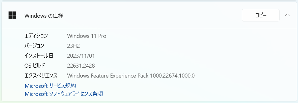 10/31よりWIN11 23H2の配信が開始されたようだ。わたしの環境(Core i 7 5960x)ではWindows Updateには、まだ出ていない。