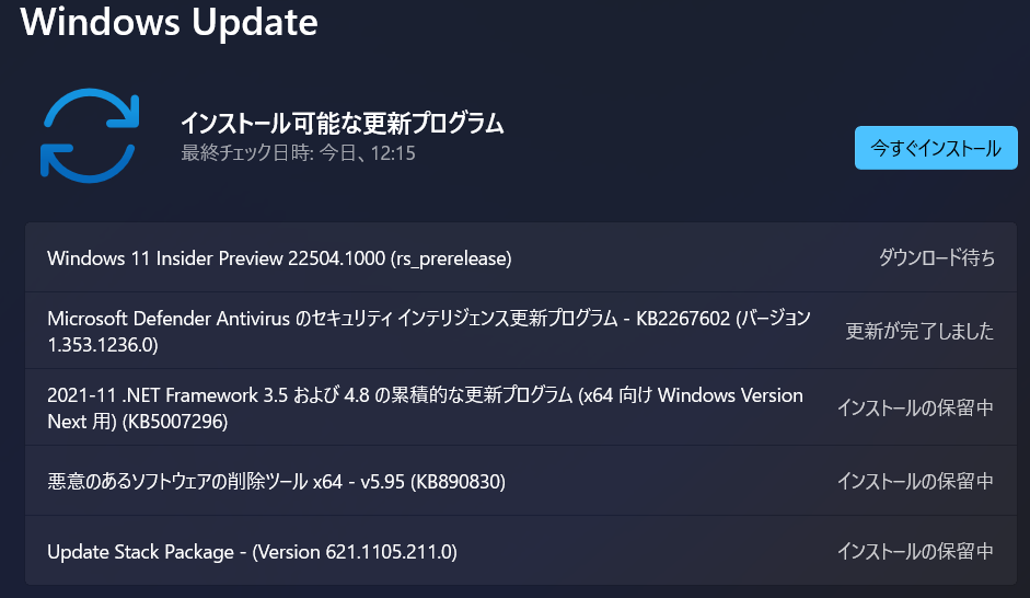 定例アップデート、12月は合計4個のアップデートが入っていました。タスクマネージャーの色がおかしくなる件が改善しているようです。