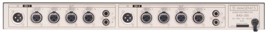 1入力6分配が可能、2系統装備でステレオ素材の分配器として