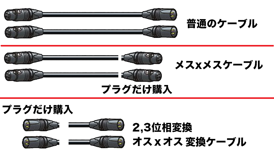 ②オスxオス変換ケーブルを2本作成(オスプラグ2個別途必要)