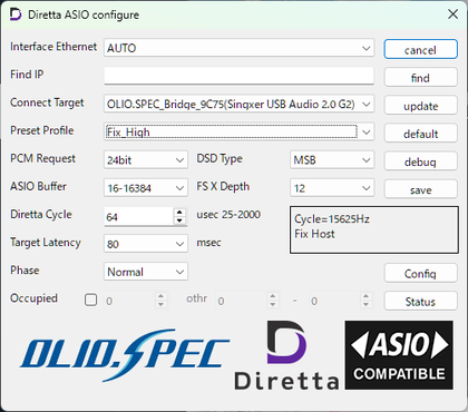 ・公式製品のみで構成している場合 → DirettaASIOdriver