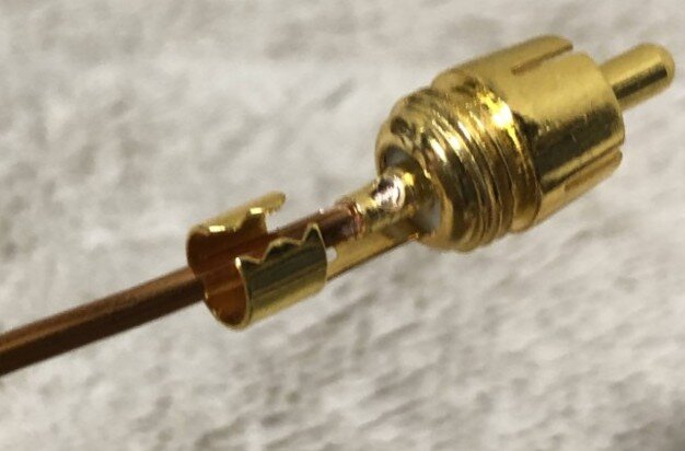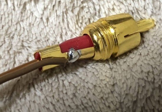 ハンダも乗らないためホット端子をラジオペンチで締めて圧着した