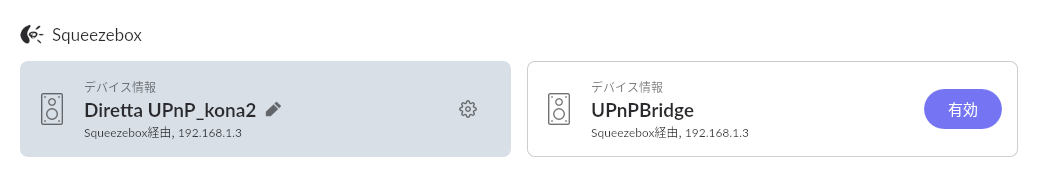 その結果 squeeze2upnp ブリッジが不要 になった
