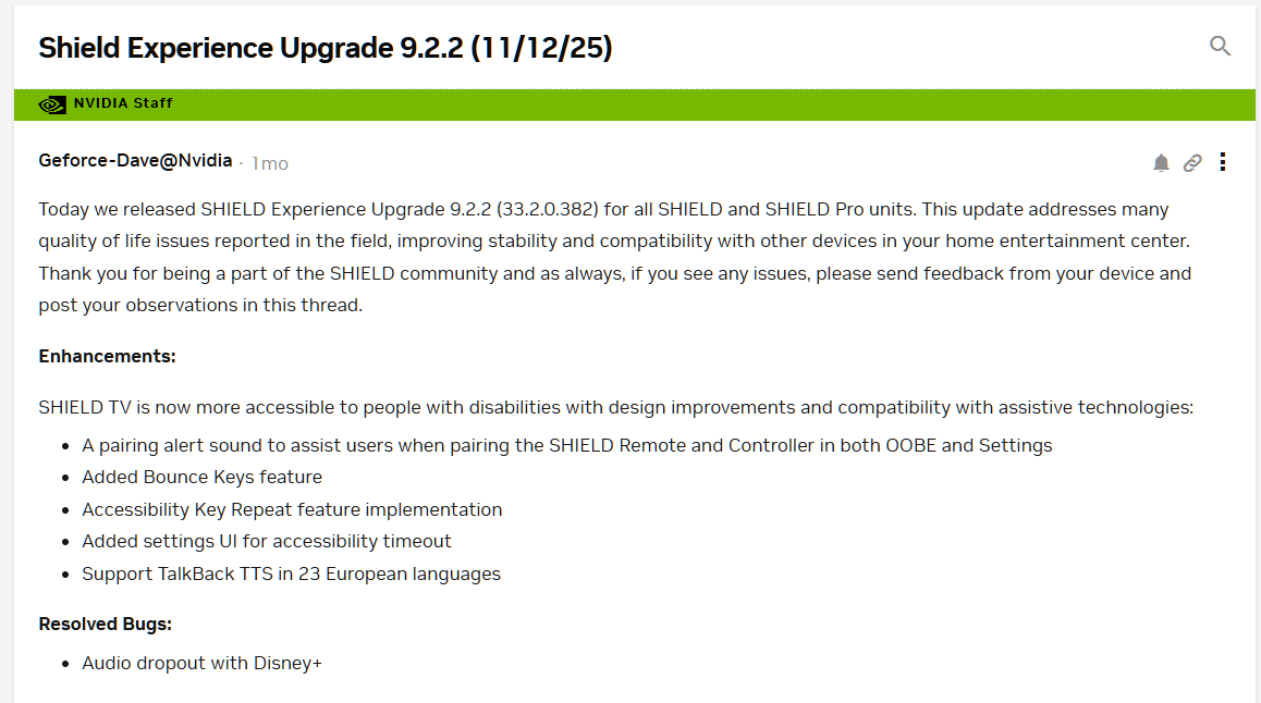 SHIELD TVのシステムアップデートを確認し、最新バージョンになっているか確認します。