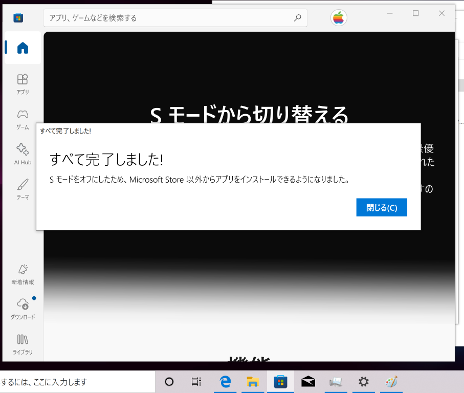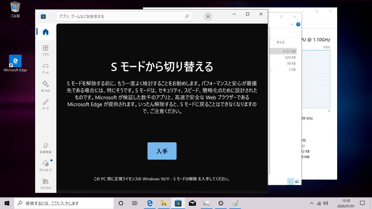 バージョンは、WIN10 1909 で Sモードになっている