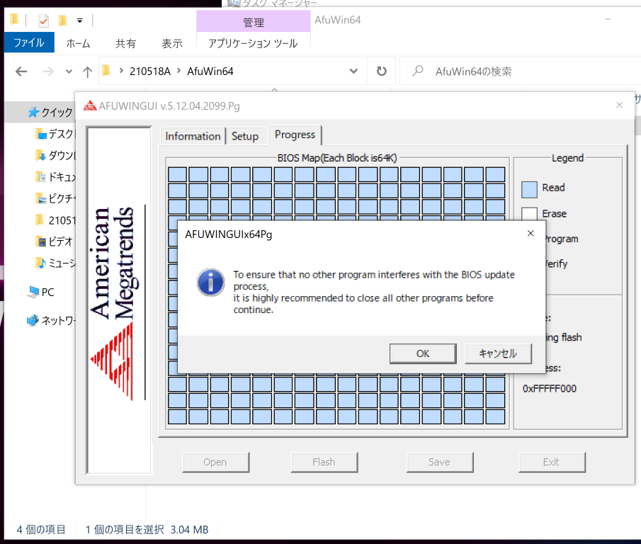 ダウンロードしたBIOSアップデートファイルで更新