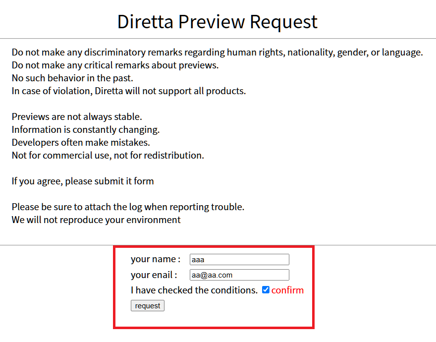 Direttaのドライバは、公式のプレビューページから誰でも入手できるようになっています