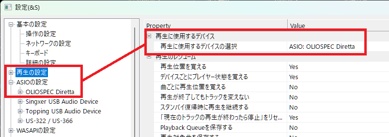 ・プレイヤーで Diretta ASIO を選ぶだけで再生できる